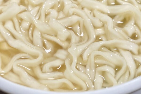 そこまで耐久力に特化しているわけではないけれど、むしろ食べ始めより柔らかくなってきた後半のほうがポジティブで、つゆの方向性にしっかりフィット。あとは食べ始めの反発性やコシの加減がすこし中華麺っぽいというか、うどんのそれとはベクトルが異なるように感じたんですけど、それについてはおそらく炭酸塩(Ca、Na、K)の効果。