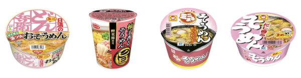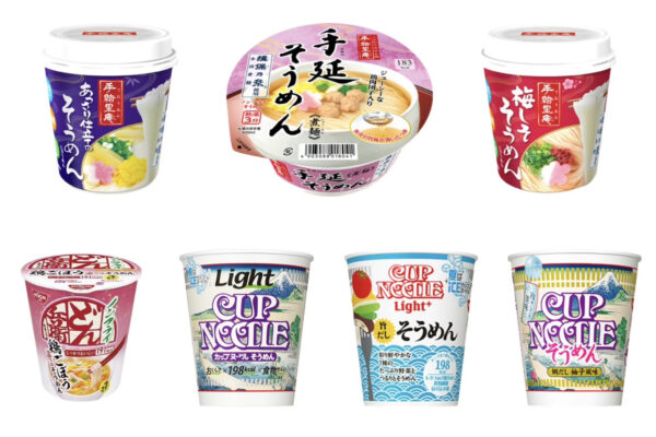 上記の4品は油で揚げたフライそうめんを搭載してますが、ニュータッチのヤマダイが揖保乃糸を使った本格派のノンフライそうめん「手延そうめん」「あっさり仕立てのそうめん」「梅しそそうめん」を常時展開。