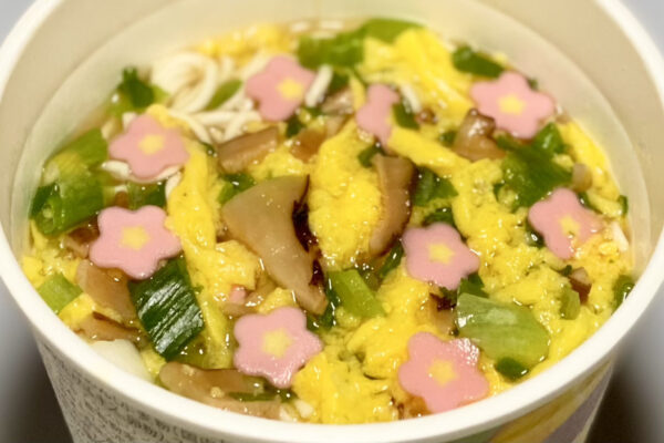 ネギの香りは熱湯を注ぎ始めた瞬間から主張してくるので、苦手な方にはマイナス点になりますが、フリーズドライだからこその繊細な香りが「温つゆそうめん」の世界観にマッチ。花形かまぼこで彩りもよく、つゆに椎茸の旨み成分(グアニル酸)が滲み出るところもポイントで、イノシン酸(鰹・鯖・飛魚)やグルタミン酸(昆布)と手を取り合い、うまみの相乗効果も図れている。いやもうほんとに、かなりヤバいですよこれ。
