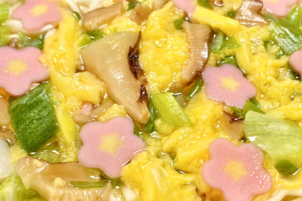 | 【原材料名】めん(小麦粉(国内製造)、植物油脂、食塩、しいたけエキス、卵粉)、スープ(食塩、かつおぶしエキス、糖類、デキストリン、しょうゆ、香味調味料、かつおぶし粉末、昆布粉末、たん白加水分解物、さばぶし粉末、昆布エキス、ホタテ粉末、ゆず皮、酵母エキス、焼あご粉末、香味油)、かやく(卵、味付しいたけ、魚肉練り製品、ねぎ)/ 加工デンプン、調味料(アミノ酸等)、増粘剤(増粘多糖類、アルギン酸エステル)、炭酸カルシウム、リン酸塩(Na)、ソルビット、乳化剤、グリセリン、香料、カラメル色素、酸化防止剤(ビタミンE)、クチナシ色素、カロチノイド色素、ビタミンB2、ビタミンB1、ベニコウジ色素、(一部に卵・乳成分・小麦・えび・さば・大豆・鶏肉・ゼラチンを含む)※本商品製造工場では、落花生(ピーナッツ)、かにを含む商品を製造しています。 |