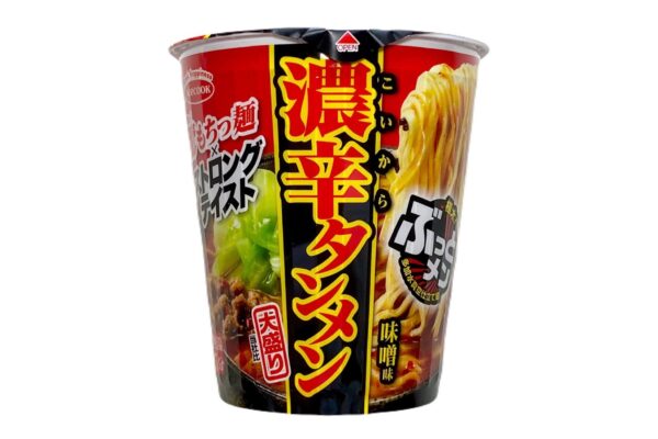 昨年の「スタミナ豚骨醤油ラーメン」に次ぐ「ぶっとメン」待望のシリーズ第2弾として、前述の独自技術で実現した驚くほどモチモチの “驚(きょう)もちっ麺„ に、しっかりと濃くて辛い “ストロングテイスト„ なスープを特徴とする「濃辛(こいから)タンメン」を展開してきたエースコック。