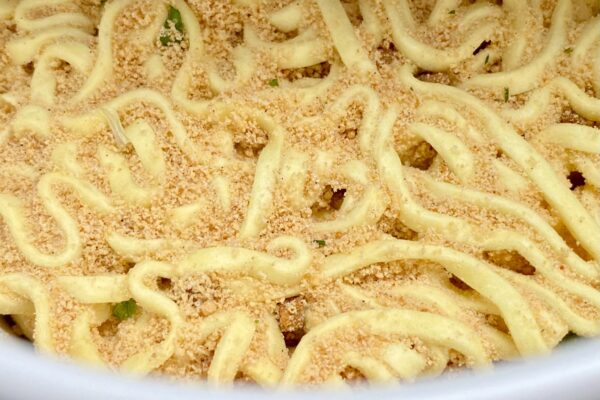 そして、もうひとつ注目すべきは量の多さ。有名店が監修した商品の中でも、縦型ビッグのカップラーメンに搭載される麺の量は、平均して70g〜80g程度です。しかし、今回は “めん85g„ なので、セブンプレミアムの商品を例に挙げると「蒙古タンメン中本 辛旨味噌」に匹敵するサービス。なおかつ油揚げ麺とはいえ嫌に安っぽいわけではない、諸々の理由を踏まえて価値が見出せる内容でした。