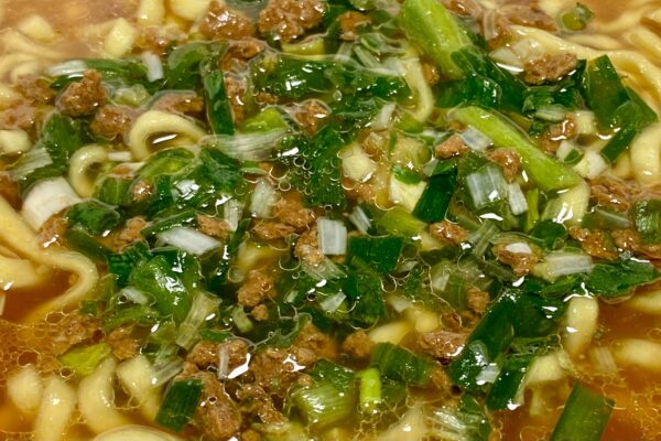 ねぎは熱風乾燥だったので、特有の繊維質と風味が安っぽさを増長する側面を持っているけれど、今回は本格さを重視していないため極端に浮いているわけではなく、むしろ分かりやすい歯触りが食感のアクセントに効果的。そしてニラ、これもパンチの底上げとスタミナ感の向上に寄与。量も縦型ビッグだったら「けっこう多いなー」くらいには入っていたので、結果的な印象としては悪くありませんでした。