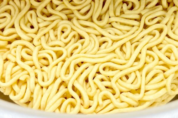 麺は油で揚げたフライ麺で、湯戻し時間は標準の3分となっているのですが、ちょっと不安なのが「超大盛りスーパーカップ2.0倍」だからこそのボリューム感。幅と厚みを見る限り、3分きちんと守れば不具合なく戻ってくれそうな雰囲気ではあるものの、問題は “めん120gでも最後まで飽きずに楽しめる耐久性が備わっているのか„ どうか。それと、メーカー希望小売価格についても触れておかなければいけません。