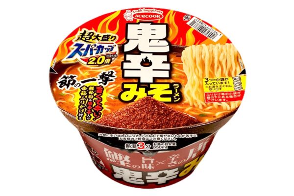 本日の一杯は、2025年12月15日(月)新発売、エースコックのカップ麺「超大盛りスーパーカップ2.0倍 節の一撃 鬼辛(おにから)みそラーメン」(348円+税)の実食レビューです。