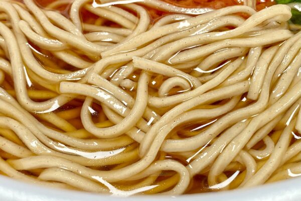 2017年(平成29年)9月11日に従来の「手緒里庵」ノンフライそばシリーズが「凄麺」に移籍したタイミングで三割蕎麦(そば粉30%)に変わるなど、そば粉の含有量は当初よりも減っているのですが、それでも業界きっての本格派。もちろん油で揚げたフライそばにも特有の魅力はあるけれど、リアルさに重点を置くと右に出る者がいない品質で、再現度の観点から見ても高く評価できるアイテムです。
