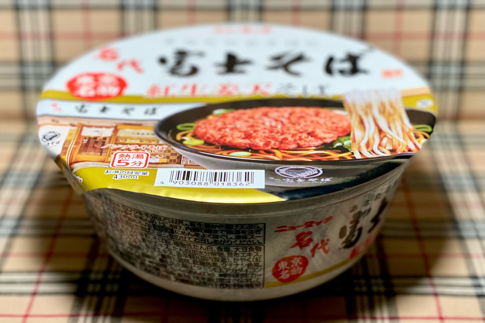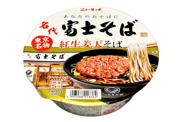 このページでレビューする「名代富士そば紅生姜天そば」は、ニュータッチのブランドで知られるヤマダイとのコラボ商品で、実店舗の味わいを忠実に再現した一杯。2019年(令和元年)11月18日に初代「紅生姜天そば」を発売するや否や、待ってましたとばかりに箱買い民が続出。当初の販売予定では首都圏のスーパーマーケット・コンビニ限定とされていましたが、あまりに反響が大きく、すぐさま異例の全国展開に切り替わったほど。