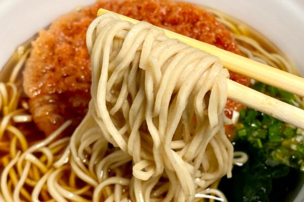 2025年12月現在、凄麺ご当地シリーズの定番商品「茨城けんちんそば」には常陸秋そば粉(そば粉の内20%)を配合したノンライそばを使用しているのですが、ヤマダイの公式ウェブサイトに掲載されている商品情報や該当のニュースリリースに常陸秋そば粉配合の訴求は見当たらないため、先に触れた「凄麺 そばの逸品 鴨だしそば」と同じノンフライそばを使用しているのでしょう。