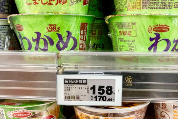 エースコックの「わかめラーメン」は1食あたり158円(税込170.64円)で販売されていたので、税込52.92円の価格差が生じていました。しかし、エースコックの「わかめラーメン」は広告の品として掲載されることも多く、安売りの日には同じ店舗で119円(税込128.52円)の特売価格に値下がりするため、そのタイミングであれば税込10.8円の価格差に縮まります。