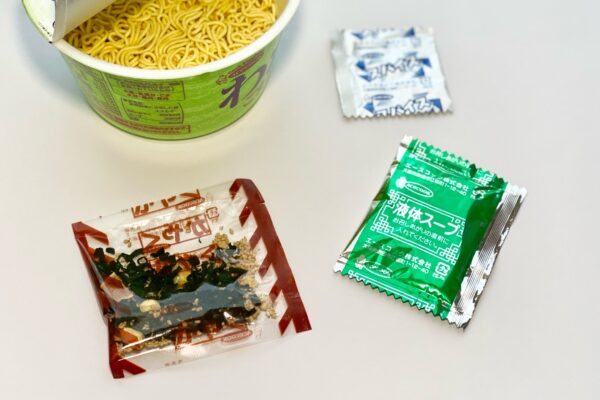 | 原材料名:スープ(しょうゆ、砂糖、植物油脂、食塩、発酵調味料、たん白加水分解物、魚介エキス、香辛料、酵母エキス、難消化性デキストリン) |