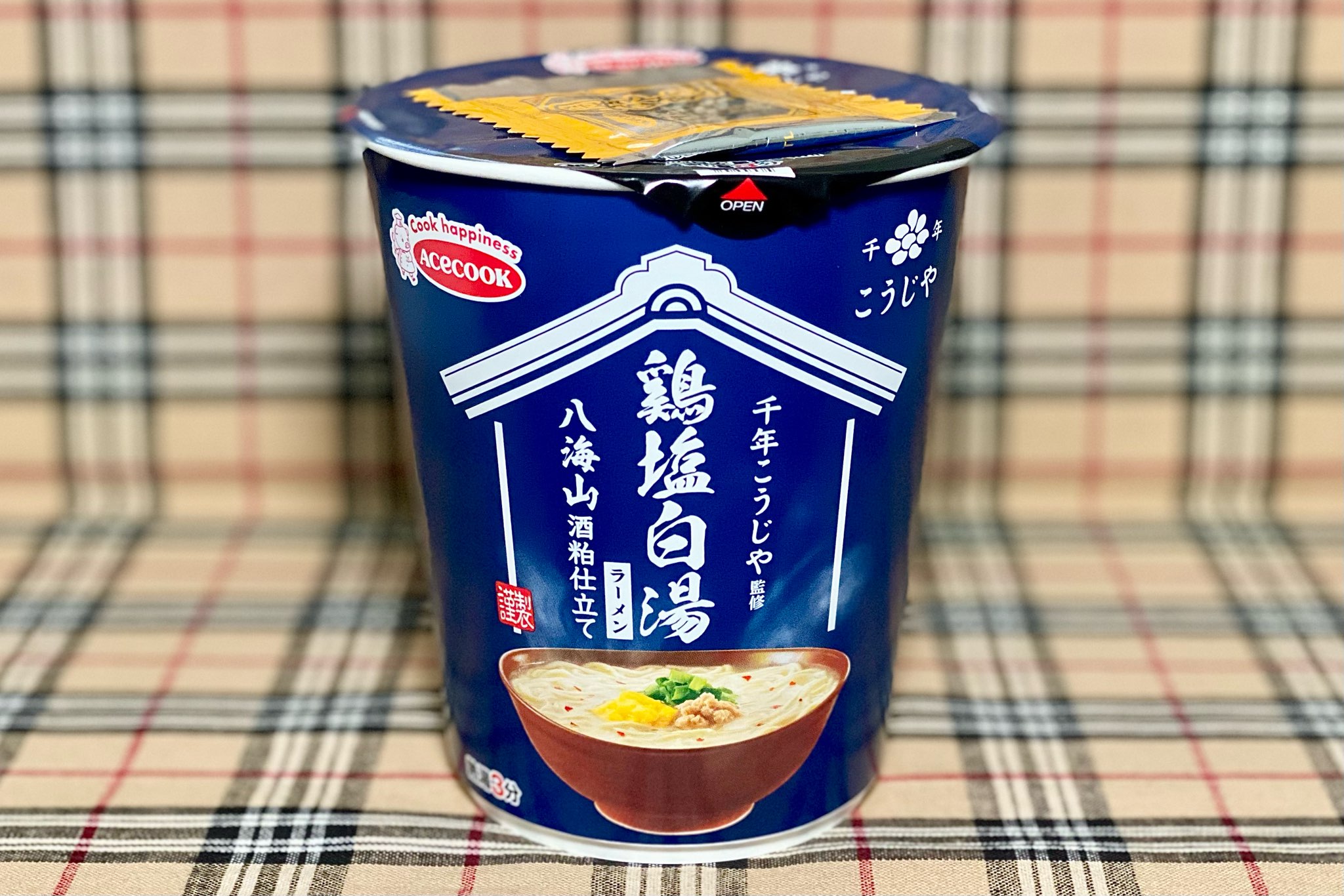 本日の一杯は、2025年10月13日(月)新発売、エースコックのカップ麺「千年こうじや監修 八海山酒粕仕立て 鶏塩白湯ラーメン」(236円+税)の実食レビューです。