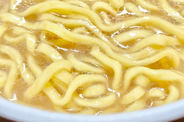 なめらかな麺肌から口当たりと喉越しもよく、蒸した麺を揚げた際に発生する気泡も比較的に小さくて、何度も噛み締めたくなる密度感。弾力の持続性も悪くなかったので、それも食べ応えに寄与していました。これは好みの問題かもしれませんけど、スープとの一体感が増してくる後半のほうが美味しいと感じたので、熱湯5分+液体スープを入れて撹拌+2分前後休ませる、くらいがベストかもしれません。