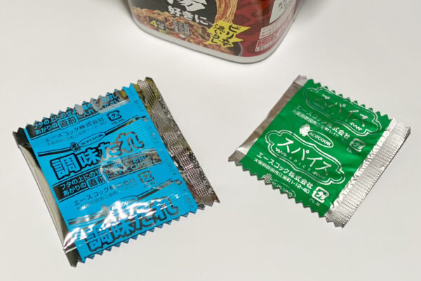 逆にボックス型のメリットは、よくあるカップ焼そばの容器と比較して温度の低下が気にならない点。麺を揚げた際に発生する気泡を限界まで外に押し出したような、むしろ特有の気泡を感じないといっても過言ではない密度の高さと熱が最後まで楽しめる、あらためて品質の高さを実感しました。