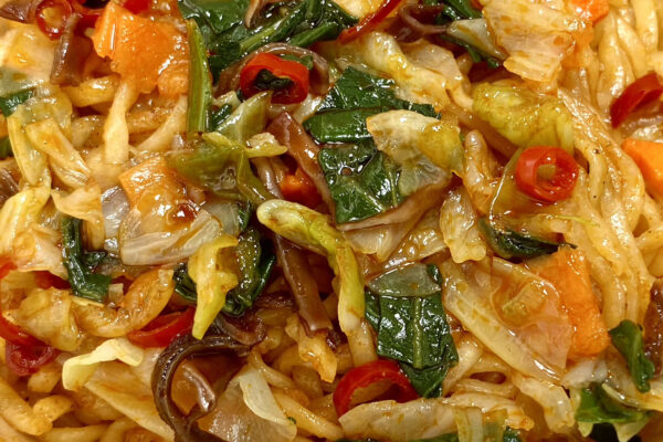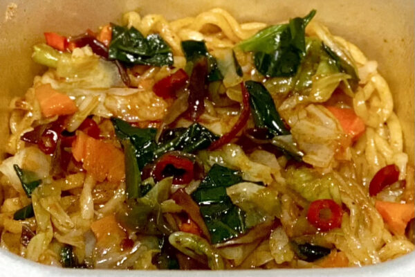 キャベツ、チンゲン菜、人参、キクラゲ、輪切り唐辛子は、いずれも他の商品に使用されている具材なので、新鮮味はありません。ただ、なかでもチンゲン菜とキクラゲは前述の調味たれ&スパイスと相性がよく、汁なしカップ麺といえばのキャベツはボリューム感の底上げに寄与。