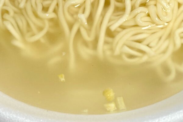 よくも悪くも麺の自己主張が強い分、食べ始めはスープに勝ち過ぎている印象を受けたので、すこしミスマッチに思えたのも束の間、折り返し地点からスープとの親和性がグイグイ向上。それこそ食べ終わる頃に麺とスープの相性がピークを迎える感じだったので、熱湯5分+添付調味料を馴染ませてから追加で5分放置がベストかもしれません。