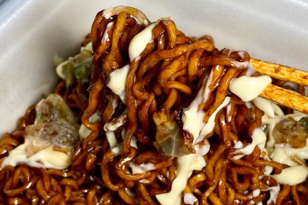 ちなみに以前、まるか食品が “6gの麺に対して1gのマヨネーズを使用„ した「ペヤング 超大盛やきそばマヨネーズMAX」を販売していましたけど、今回の比率は “約4.3gの麺に対して1gのマヨネーズ„ なので、かなりエグい。まずは最初に液体ソースの個性を噛み締めて、マヨネーズは途中から使うのがベストやも。それから食べるタイミングにも気を付けてください。マジでニオいもヤバいんで。【author・taka :a(大石敬之)】
