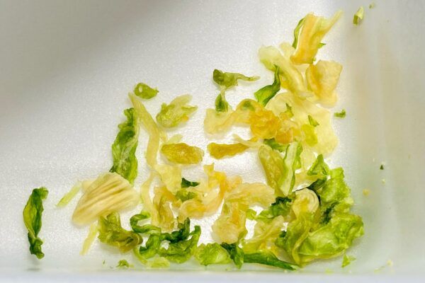 このキャベツは「一平ちゃん夜店の焼そば」を筆頭に、明星食品の他製品で頻繁に見かける具材なので、目新しさは皆無。また量も特別に多いわけではないけれど、今回はマヨネーズのインパクトがアレすぎて正直なんかもう具材とかどうでもいいやって←