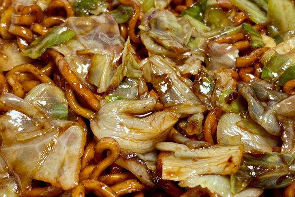 | 【原材料名】油揚げめん(小麦粉(国内製造)、植物油脂、食塩、ソース)、ソース(マヨネーズ、しょうゆ、糖類、油脂加工品、香辛料(ガーリック)、食塩、豚脂、ポークエキス、たん白加水分解物)、かやく(キャベツ)/ 加工デンプン、カラメル色素、香料、調味料(アミノ酸等)、トレハロース、炭酸カルシウム、酒精、かんすい、増粘剤(加工デンプン)、酸化防止剤(ビタミンE)、酸味料、カロチノイド色素、炭酸マグネシウム、ビタミンB2、ビタミンB1、香辛料抽出物、(一部に卵・乳成分・小麦・ごま・大豆・鶏肉・豚肉・りんごを含む) |