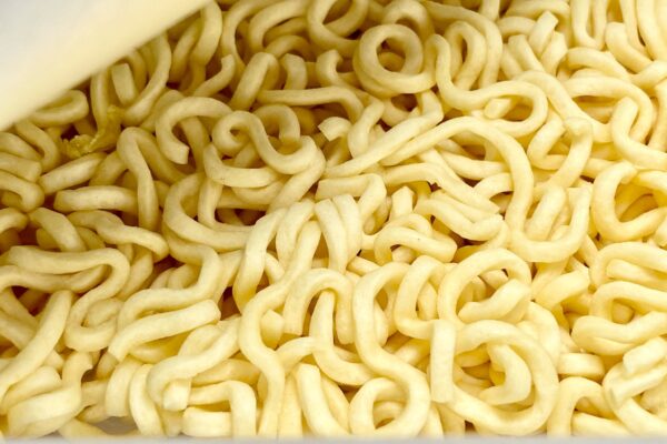 麺は油で揚げたフライ麺(130g)で、そこまで太めに切り出されているわけではないけれど、湯戻し時間は長めの5分。商品名が焼きそばではなく「まぜそば」となっているため、歯切れの良さよりも粘りを重視しているのか、それとも豚骨のイメージで歯切れの良さも兼ね備えているのか、そのあたりも気になるポイント。