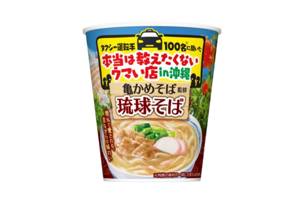 今週注目のカップ麺は、タクシー運転手とタッグを組んだ日清食品の新たな試み「タクシー運転手100名に聞いた 本当は教えたくないウマい店」シリーズ第1弾「in沖縄 亀かめそば監修琉球そば」ということで‥‥商品名が長いw あと、なんか某テレビ番組の企画みたいなタイトルですよよね。実際に沖縄県那覇エリアのタクシー運転手100名に取材したようなので、第1弾はもちろん今後の展開も気になるところ。