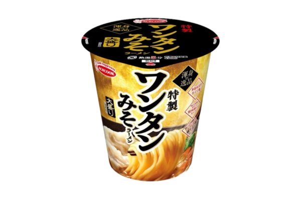 個人的に期待を寄せているのはエースコックが世に送り出した「渾身の逸品」シリーズ第4弾「特製ワンタンみそラーメン 大盛り」で、前回の「特製肉だしうどん」はブログに残せなかったんですけど、第1弾「特製中華そば」及び第2弾「特製蛤だし塩そば」は高評価を記録しているため期待大。今回の第4弾にも筆者が絶賛してきた “多加水真空仕立て麺„ を搭載しているため、不安なポイントといえばワンタンの仕様くらいでしょうか。