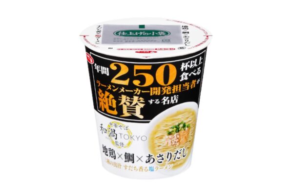 さらにさらに、年間250杯以上のラーメンを食べるサンヨー食品の開発担当者が絶賛した東京・北品川の隠れた名店「中華そば 和渦(わか)TOKYO」の人気メニュー「三位一体」(地鶏×鯛×あさりだし)の味わいを再現した「サッポロ一番 開発担当者絶賛 和渦TOKYO監修 地鶏×鯛×あさりだし塩ラーメン」も登場ということで、貝出汁(だし)に強いサンヨー食品の面目躍如に期待できる一杯。焼鯛の風味とすだちの香りも特徴だとか。