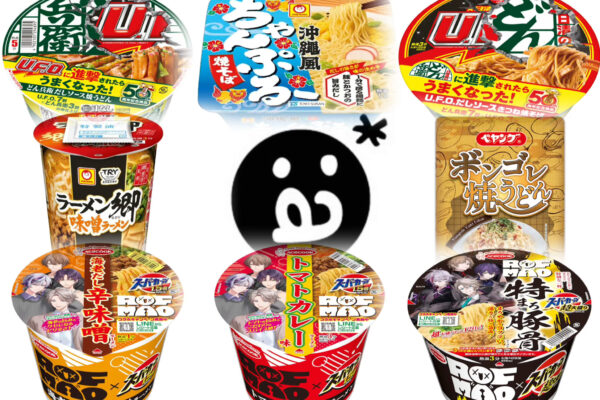 今週の注目すべきカップ麺は、ペヤングの新作「ボンゴレ焼うどん」に、発売50周年記念で “3割ずつ進撃された„ 日清のロングセラー「どん兵衛」と「日清焼そばU.F.O.」の企画も興味深く、さらに「沖縄風ちゃんぷるー焼そば」や「世界の味麺めぐり 麻辣湯麺」「辛ラーメン焼きそば 炒めキムチ味」「豚骨拉麺 凪 豚王」「ラーメン郷」など、新商品の数は少なめながらも濃いめのラインナップ。