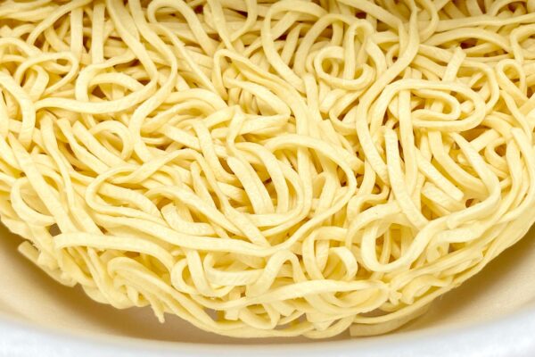 そして、これが少し不安なノンフライ麺。ファミリーマートの公式ウェブサイトには “生麺のようななめらかな口当たりと、やや硬めで歯切れのよい麺が特徴„ との記載があるため、加水率は比較的に下げている模様。はたして「生麺ゆでてうまいまま製法」の限界を超えているのか、それとも煮干し系の正麺カップに使われているテンプレなのか、そこも見どころのひとつ。