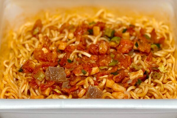 ペヤングの油揚げ麺に配合されている “香辛料„ の内訳は「ガーリックフレーク」と「脱脂大豆」なので、多少なりとも味に影響する原材料を使っているわけなんですけれども、ぶっちゃけ体感的に大きな差が生じることはありません。