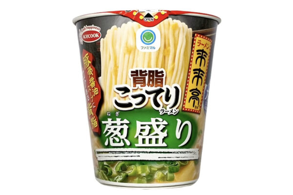 このページでレビューする「来来亭 背脂こってりラーメン葱盛り」は、ファミマルの定番「来来亭 背脂しょうゆラーメン」とは一線を画す、店舗で人気のカスタムオーダー「ねぎ多め」の味わいをイメージした一杯で、ファミリーマート曰く “ポークと醤油の旨みをベースに香味野菜の旨みを加えた豚骨醤油スープ„ が特徴とのこと。
