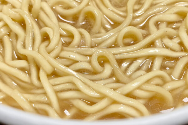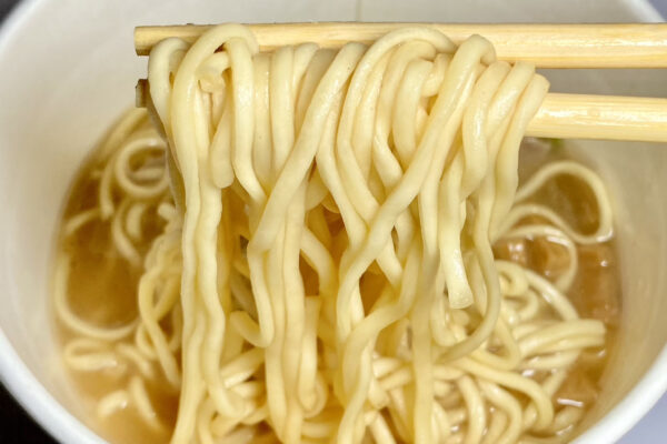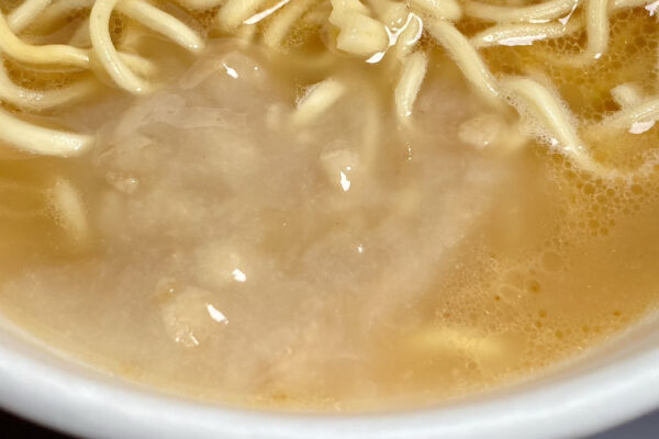 たっぷりの背脂がスープの表面を覆っているため、温度の持続性が高い。なおかつ低加水麺は比較的に伸びやすい特性を備えているけれど、それはそれでスープや背脂の魅力が味覚に伝わりやすく、けっしてネガティブな変化ではありません。またエースコックといえばの油揚げ麺臭も背脂の芳ばしさに上書きされて気にならない、実に好印象な取り合わせでした。