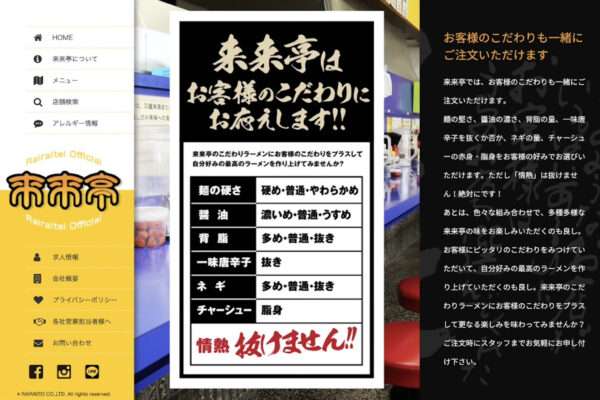 麺の硬さ・醤油の濃度・背脂の量・一味唐辛子の有無・ネギの量などをカスタマイズできる顧客ファーストの注文システムと “情熱は抜けません„ の魂でファンとの絆を深め、2026年3月現在は250店舗を展開し、1店舗あたりの平均年商は1億円を突破。さらに、営業利益率が平均8.6%とされる飲食業界において、利益率25%という驚異的な収益モデルを確立するなど、ラーメンチェーンとして非の打ち所がない成功を収めました。