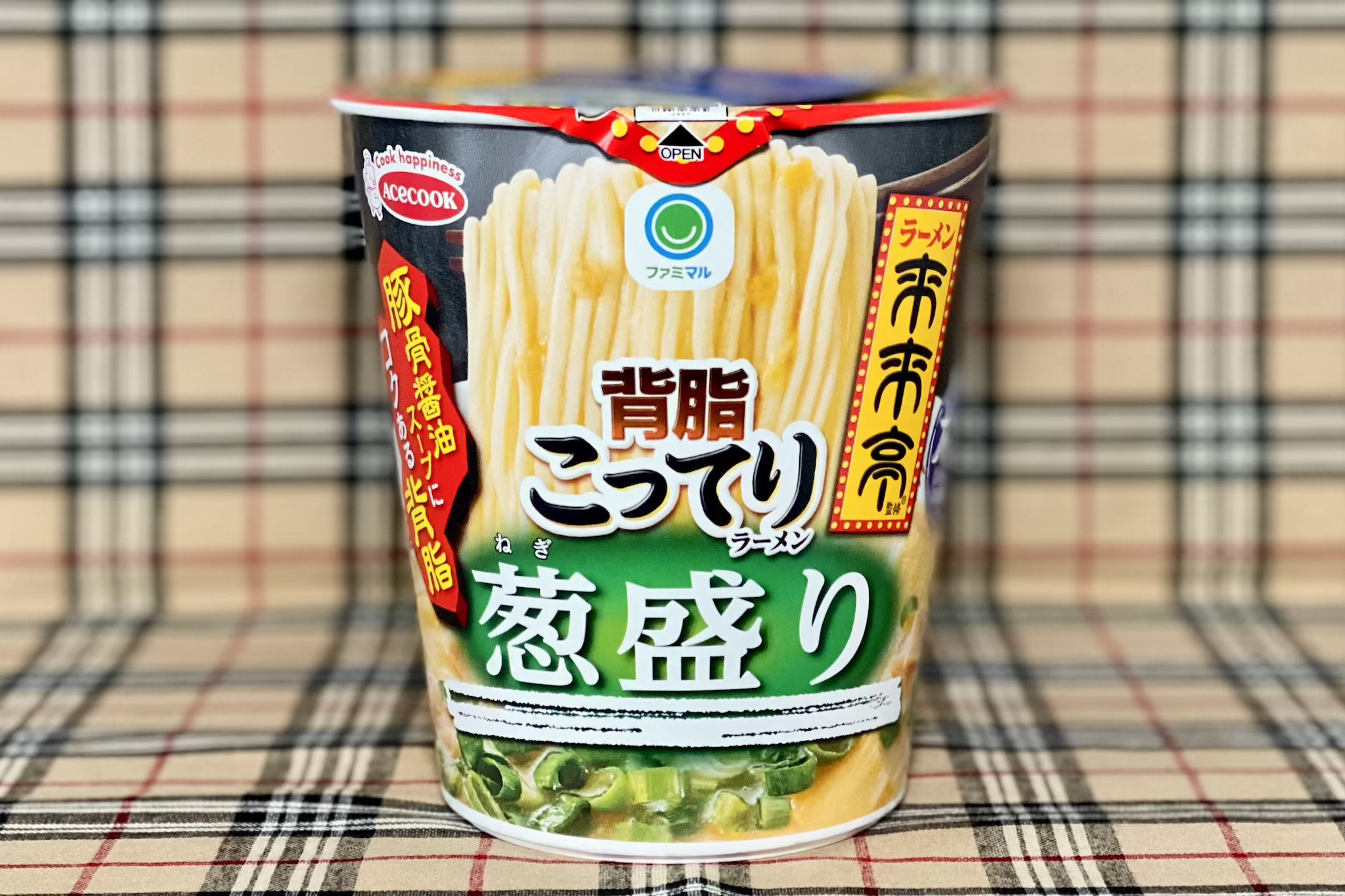 このページでレビューする「来来亭 背脂こってりラーメン葱盛り」は、ファミマルの定番「来来亭 背脂しょうゆラーメン」とは一線を画す、店舗で人気のカスタムオーダー「ねぎ多め」の味わいをイメージした一杯で、ファミリーマート曰く “ポークと醤油の旨みをベースに香味野菜の旨みを加えた豚骨醤油スープ„ が特徴とのこと。