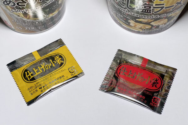 さて、まずは別添の比較。どちらも「仕上げの小袋」という名称で、基本的なデザインやサイズも完全に一致。ただ、レギュラーは黄、BIGは赤に色分けされているのと、外装込みの重さを比較してみたところレギュラーは約2g、BIGは約2.5gだったので、ちょっとだけBIGのほうが多めに充填されています。