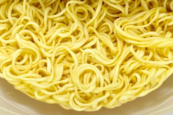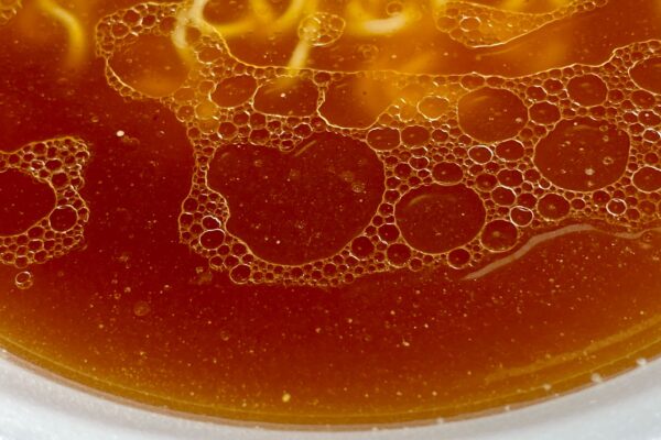 「支那そばや」の店舗で提供されている自家製麺には、身体に及ぼす悪影響の懸念がなく、外国産の小麦よりもコシが出にくい傾向がある国産小麦のグルテンを強化でき、なおかつ保水性の確保が図れることを理由にジェファー液(クロレラ熱水抽出液)を使用しているため、その “こだわり„ を尊重したノンフライ麺にも「クロレラエキス」を配合しているのが見どころの一つ。