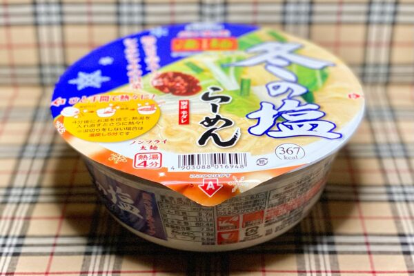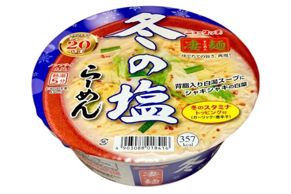ちなみに現在 “ノンフライカップ麺売上食数No.1„ に位置しているのは日清食品の麺職人[インテージSRI+ カップ麺市場 ノンフライ麺カテゴリー 2024年1月~12月「日清麺職人」ブランド累計販売食数(全国・全業態)]なんですけど、さておき今回の新商品「凄麺 冬の塩らーめん」は、寒い季節に登場する「凄麺」の冬季限定商品で、今作は記念すべきシリーズ20作目に該当する一杯。