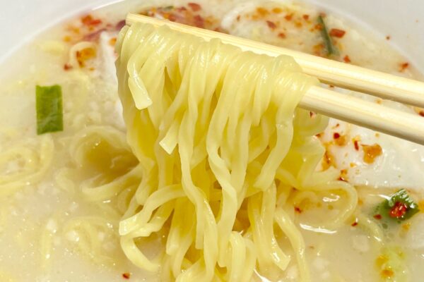 もうひとつは、一般的に細麺〜中細麺が採用されている塩ラーメンのイメージに逆らい「太麺」を使用すること。同シリーズの過去作には “細麺でも食べてみたい„ と思った商品もありましたが、濃厚なスープに埋没させないための施策かつ『伝統の冬の塩イズム』として継承されている要所の一つなので、今後も細麺が使われることはないでしょう。たぶん。