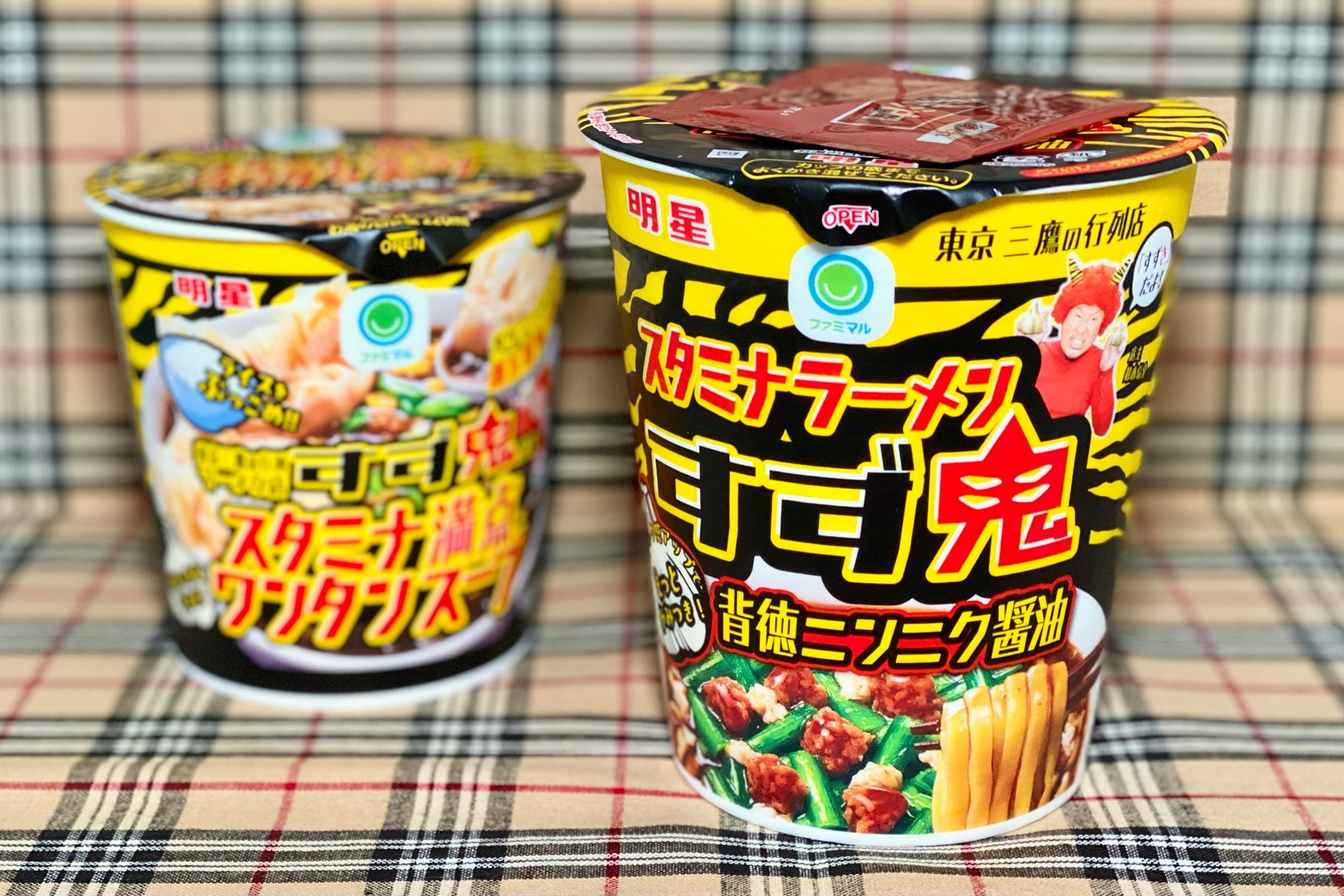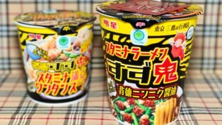 その後、2023年(令和5年)2月7日発売の「元祖スタミナ満点らーめん すず鬼」から縦型ビッグの容器に切り替わり、このタイミングでファミリーマートのPB(プライベートブランド)に移籍。以降、同店監修の即席カップめんは例外なくファミリーマートの専売品で、縦型ビッグのカップラーメンを中心に、湯切りタイプの「スタミナ醤油まぜそば」なども展開しているのですが‥‥