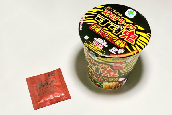 言うまでもなく即席カップめんの型に合わせてデフォルメされていますが、ワシワシとしたノンフライ麺に、アリラン由来のピリッとしたスタミナ感。さらに二郎由来のニンニクと竹岡式由来の濃口しょうゆダレが渾然一体に攻めてくる様は、まさに「すず鬼」ならではの世界観。即席カップめんというカテゴリーにおいて、これほどまでに凶暴な仕上がりは他に類を見ません。
