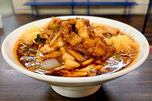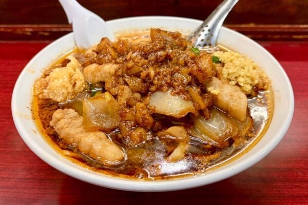 元祖スタミナ満点らーめん すず鬼(き)とは、2017年(平成29年)11月19日の創業以来、東京都三鷹市下連雀3丁目・味の散歩道で絶大な支持を集めている「鶏こく中華 すず喜(き)」のセカンドブランドで、2019年(令和元年)11月18日より二毛作店として夜限定の「すず鬼」を開店。昼営業の「すず喜」では、濁りのあるスープに鶏と魚介の旨みを閉じ込めた「中華そば」を提供しているのに対し、夜の顔は豹変——。