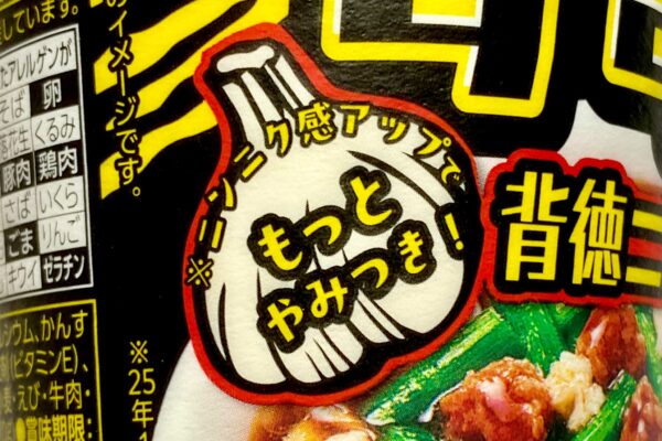 今回の「元祖スタミナ満点らーめん すず鬼 背徳ニンニク醤油」は、これまでに何度もリリースされている「すず鬼」監修のオーソドックスなスタイルなので “今だけタマゴ入り„ のようなステータスは備わっていません。しかし、2025年1月発売品比「ニンニク感アップでもっとやみつき!」ということで、そこがリニューアルポイント‥‥っていうか、これまでもニンニクは特筆して強かったんですよ。逆に大丈夫なのか‥‥?