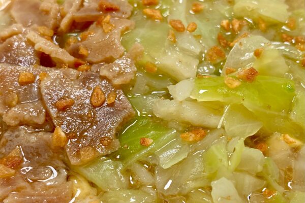 前述のように二郎系・二郎インスパイア系を象徴する「もやし」は入っていませんが、ヤサイを担うキャベツの量は大盛りサイズのカップ焼そばを比較対象に挙げても見劣りしないレベル。というか、ふつうに「明星 一平ちゃん夜店の焼そば 大盛」よりも多いんですよ、余裕で。