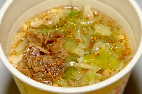即席カップめんのカテゴリーから逸脱するほどの商品ではないけれど、いわゆる二郎インスパイア系のカップラーメンとはベクトルが違う、カップラーメンという枠組みの中で二郎インスパイアの空気感を全力で表現した仕上がり。そして、ちゃんと味の方向性はレンジ麺の「豚ラーメン」を踏襲している‥‥いやはや、とんでもないですよこれ。