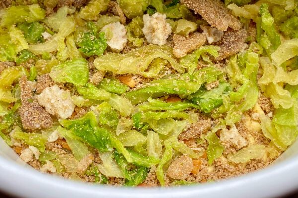 かやくはキャベツ、チャーシュー、背脂加工品、ローストガーリックの組み合わせで、もやしが入っていないのは二郎系・二郎インスパイア系をイメージした大半のカップラーメンに共通する点。直近だと “もやしカスタム推奨„ をコンセプトに据えた「カップヌードル 背脂豚骨醤油 ビッグ」が話題になりましたけど、そういったアレンジ推奨の訴求は見当たらず、これといって特殊な具材が採用されているわけではありません。