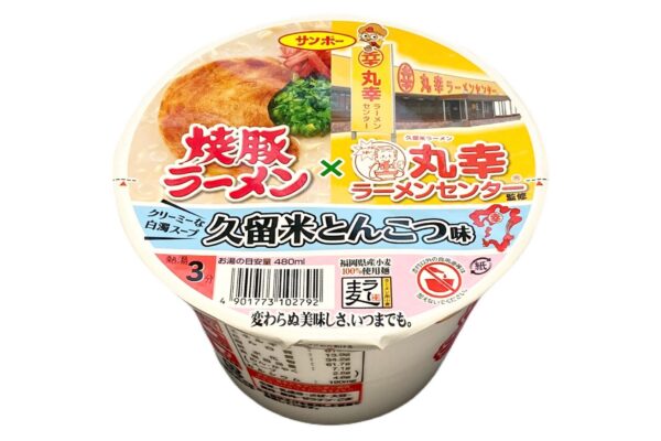 本日の一杯は、2025年11月24日(月)リニューアル発売、サンポー食品のカップ麺「焼豚ラーメン×丸幸ラーメン 久留米とんこつ味」(271円+税)の実食レビューです。