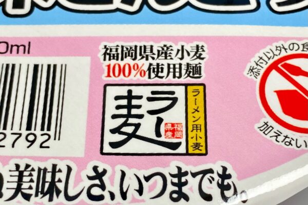 さらに “白濁系ポークエキスを追加„ かつ “ポークエキス量を増加„ して、これまで以上にスープの味わいをブラッシュアップしている——というのが主なリニューアルポイントになるのですが、もうひとつ注目すべきは麺に使っている小麦粉が「ラー麦100%」という部分。